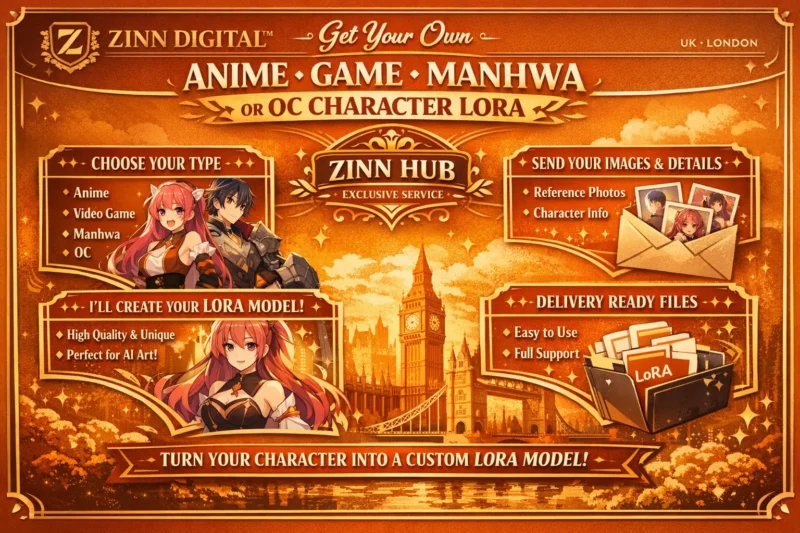Includes 1 LoRA (Pony or Illustrious, 10+ example pictures and example prompts. Up to 3 outfits | AI Art Hobbyist