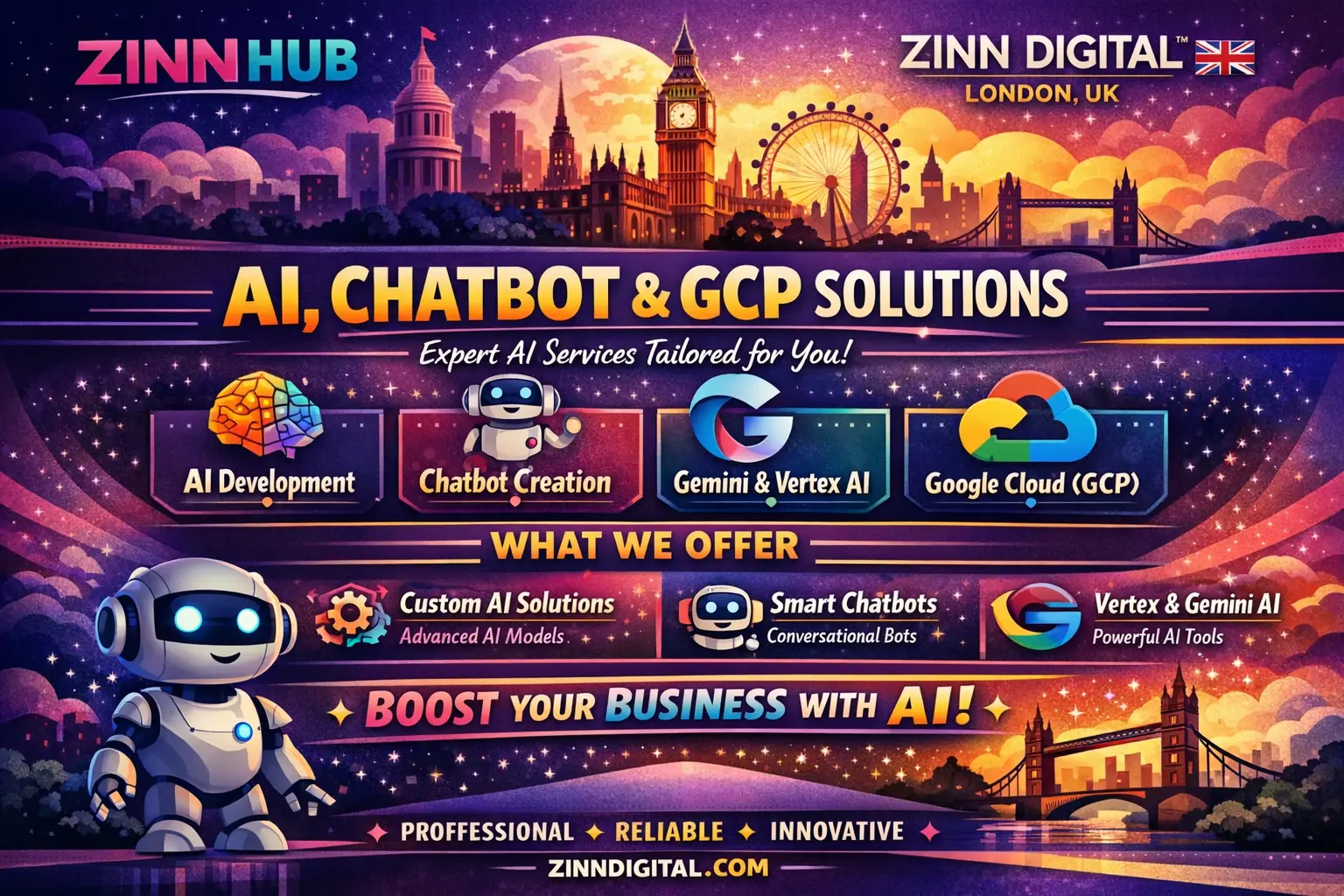Elevate your business with Zinn Digital ™'s AI solutions: Based in London, England, we offer AI solutions powered by LLMS, Langfuse, OpenAI, Langchain, GCP, AWS, Llama2, Autogen, GEMINI, AI Copilot, and Google Bard. Our services also include precision model training with TensorFlow, PyTorch, Langchain, GCP, AWS, and Llama2. Additionally, we integrate secure and transparent blockchain solutions with AI for enhanced efficiency and trust. We also offer AI SaaS applications and mobile apps or no-code tools services like Flowise, N8N, Langflow, Zapier and many more.