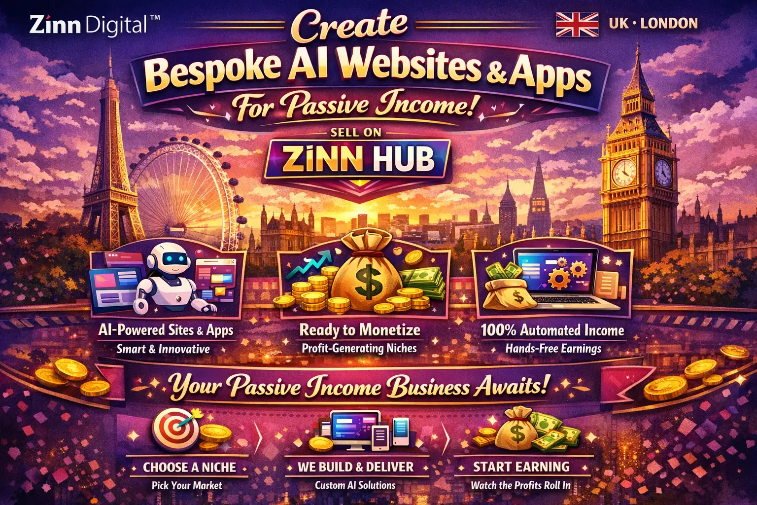 Create bespoke AI websites and apps for passive income streams