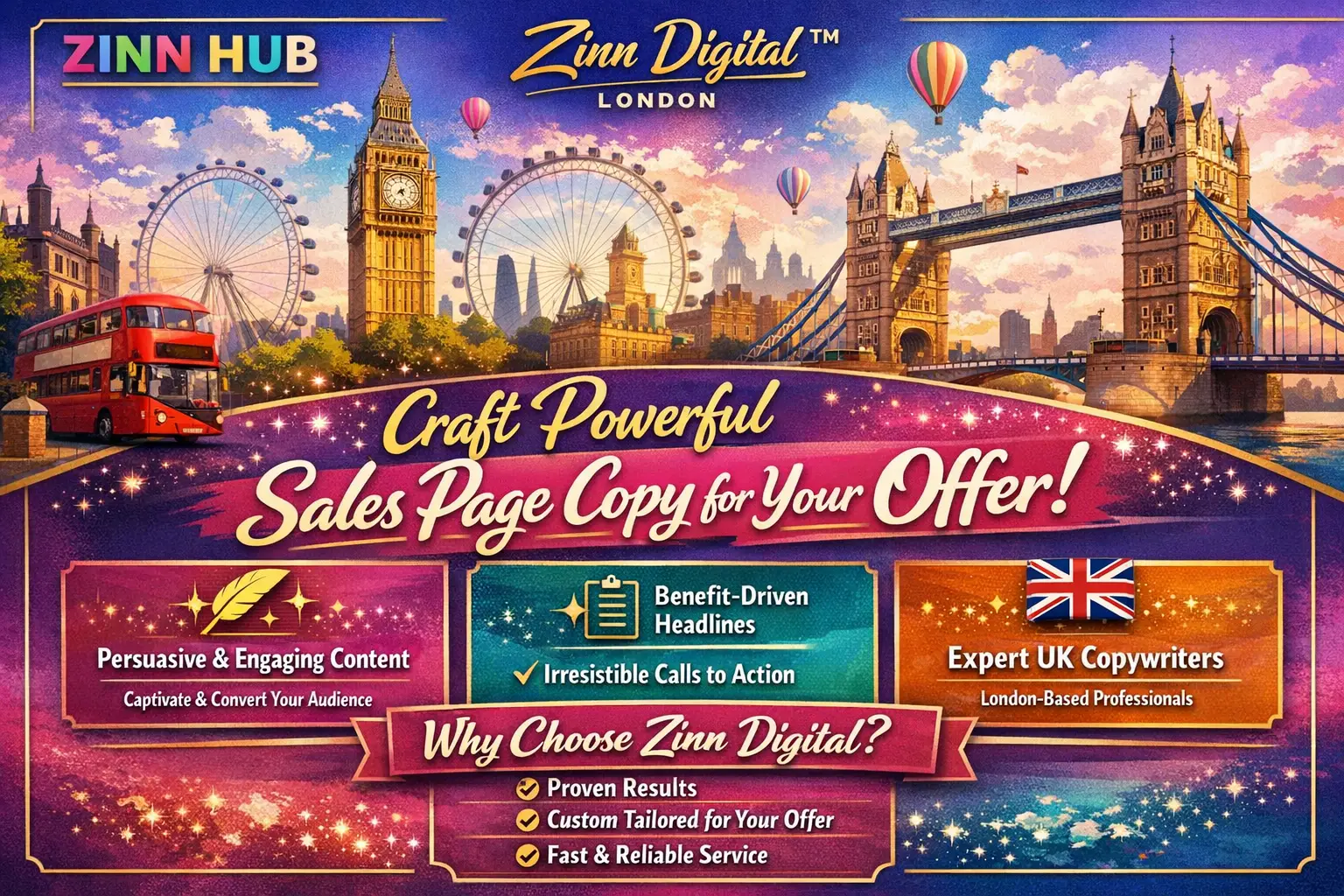 Create compelling sales page copy for your offer with Zinn Digital ™ in London