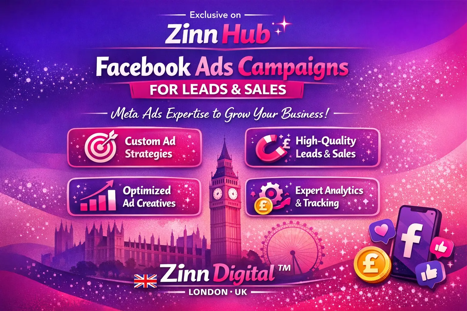 My name is Zinn Digital ™ and I'm here to be your Meta ads manager. Over the past 10+ years, our London, England-based team has worked on various social media advertising projects. We specialise in creating impactful Facebook and Instagram advertising campaigns that engage audiences and drive leads, sales and growth.