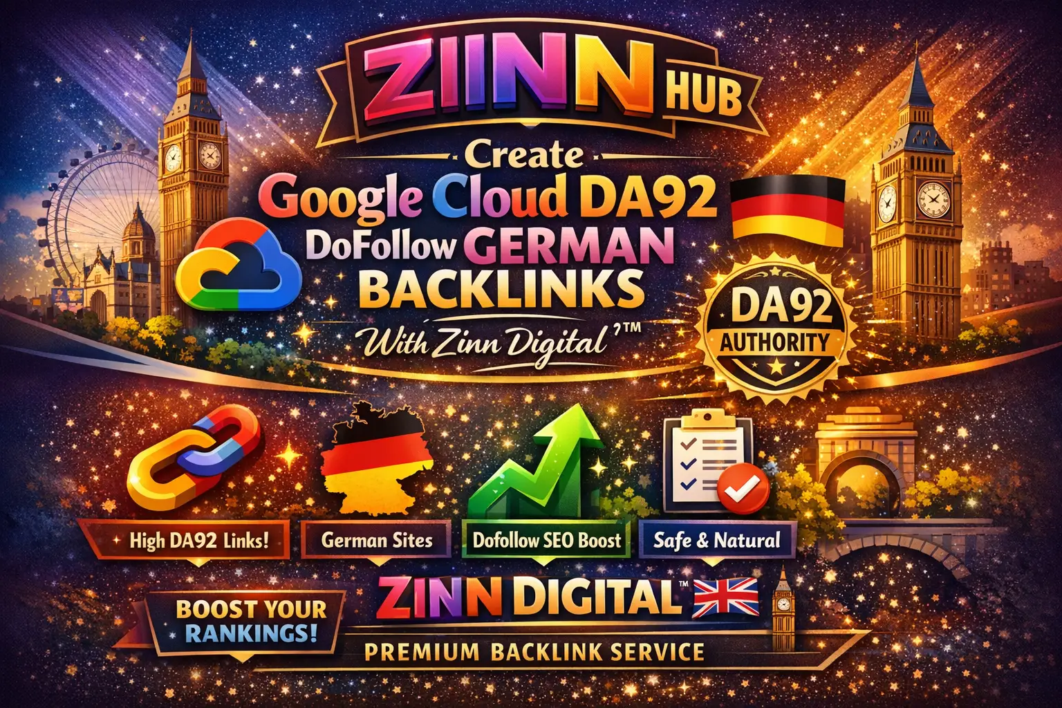 Create Google Cloud DA92 dofollow German backlinks with Zinn Digital ™