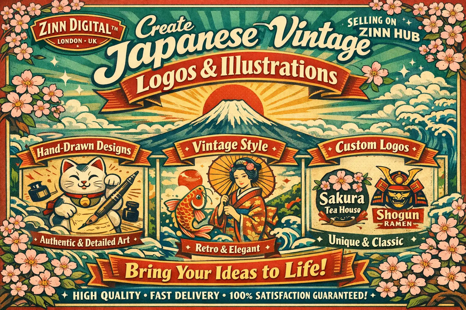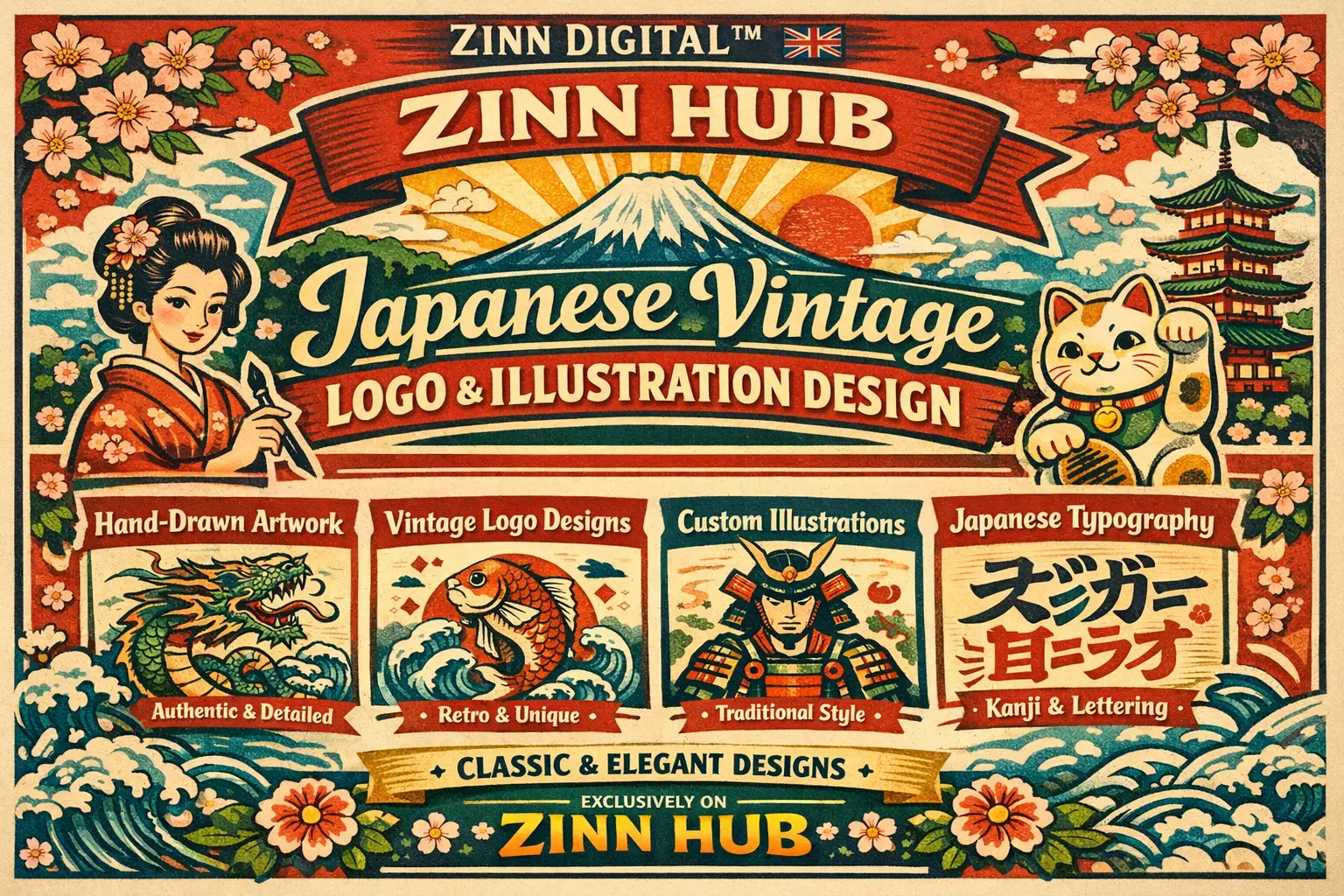 Welcome! Are you seeking a distinctive and authentic Japanese vintage style for your logo or illustration? You've found the perfect place! Zinn Digital ™ specialises in creating hand-drawn designs that capture the timeless charm of Japanese vintage aesthetics.