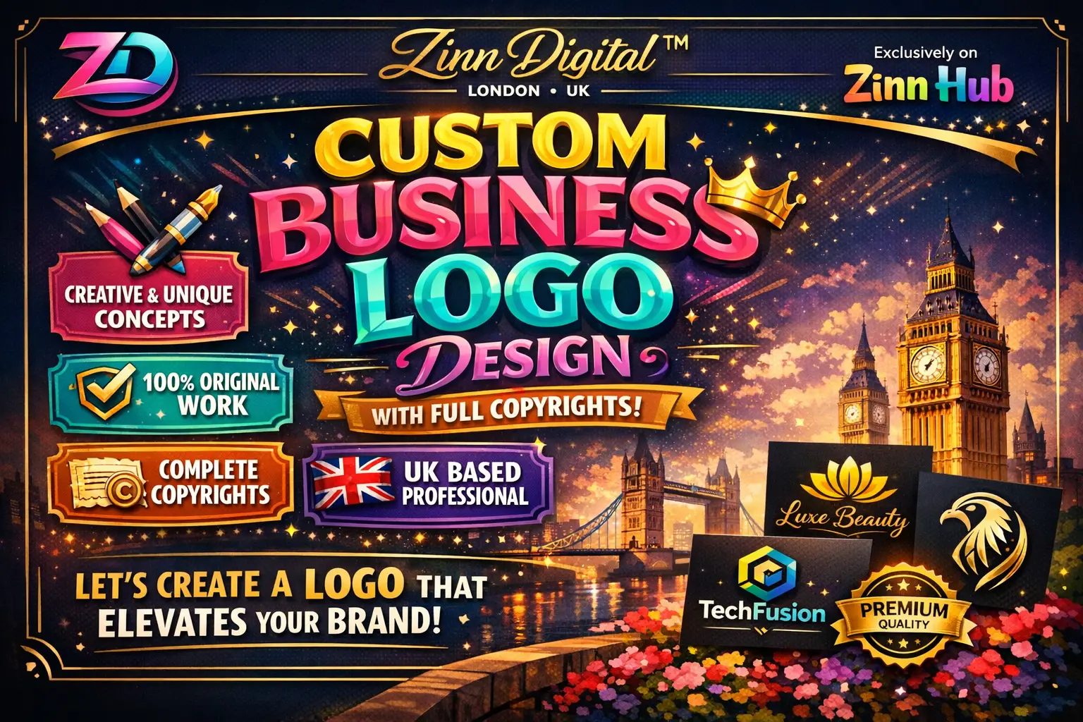 I was uncertain to use Zinn Hub being that this was my first time creating a logo. They were very easy to work with and with each edit they remain very professional and even did a zoom meeting so we could get my design correct. The team went over and beyond to make sure my logo was Perfect. Will be using them again.