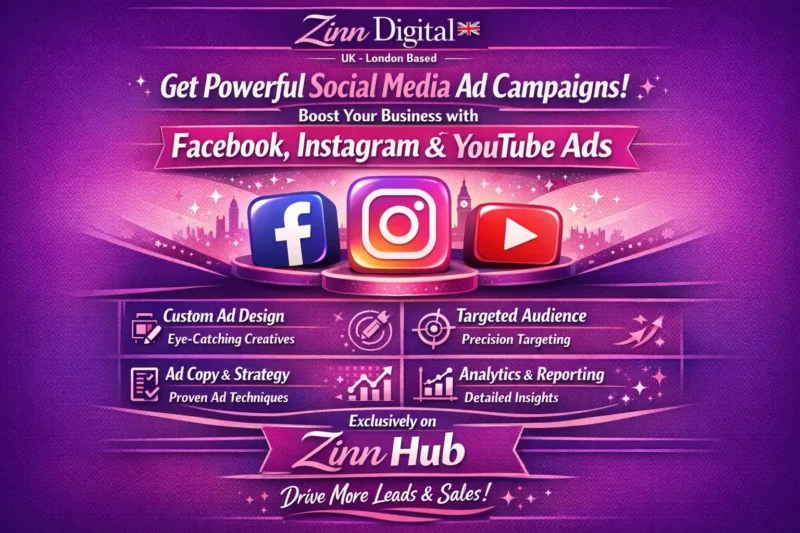 As digital marketing professionals based in London, England with over 10+ years of experience, Zinn Digital ™ specialises in Meta and Instagram ads, as well as YouTube ads.