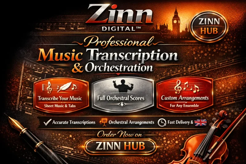 Please note: This service focuses on written music and does not include audio recording. For VST-based string recordings, please check my other Zinn or contact me for more details.