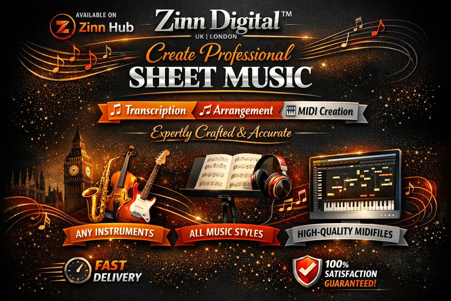Just send us your music - whether it's a polished recording, a YouTube link, or even a rough voice memo from your phone, and we'll transform it into a high-quality professional score tailored to your needs.