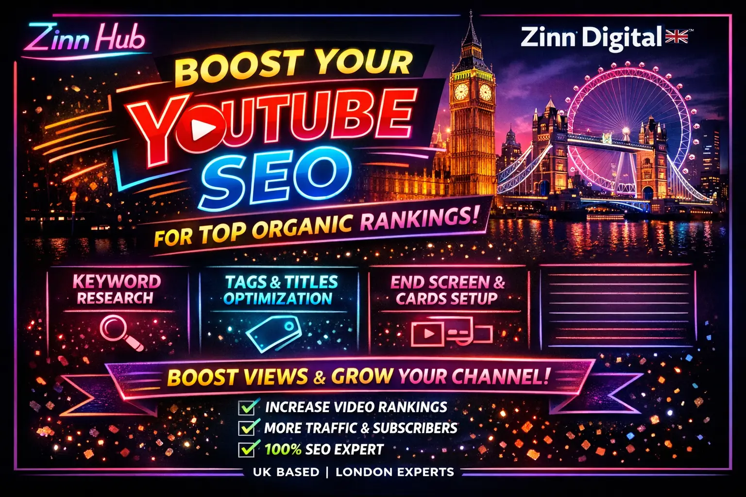 We are Zinn Digital ™, SEO experts based in London, England with 3+ years of experience. We've optimised thousands of videos, helping creators gain more views, subscribers, and organic reach.