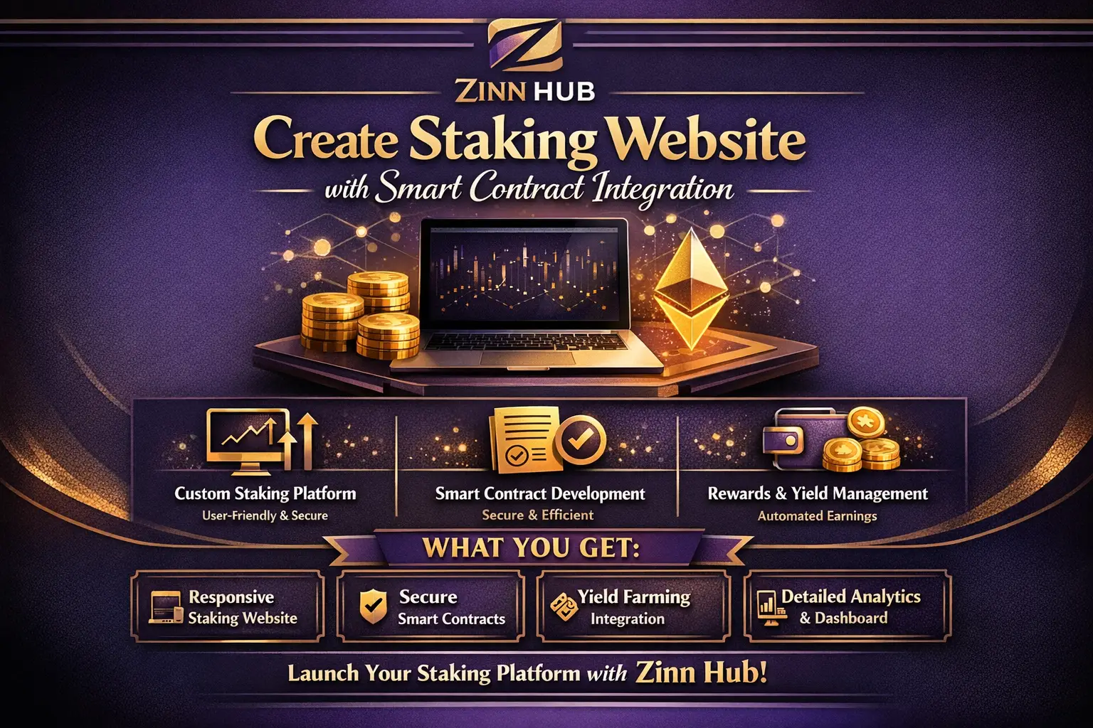 We have a team of professional graphic designers and blockchain developers with industry experience based in London, England. We will provide token staking dApp services through this Zinn.
