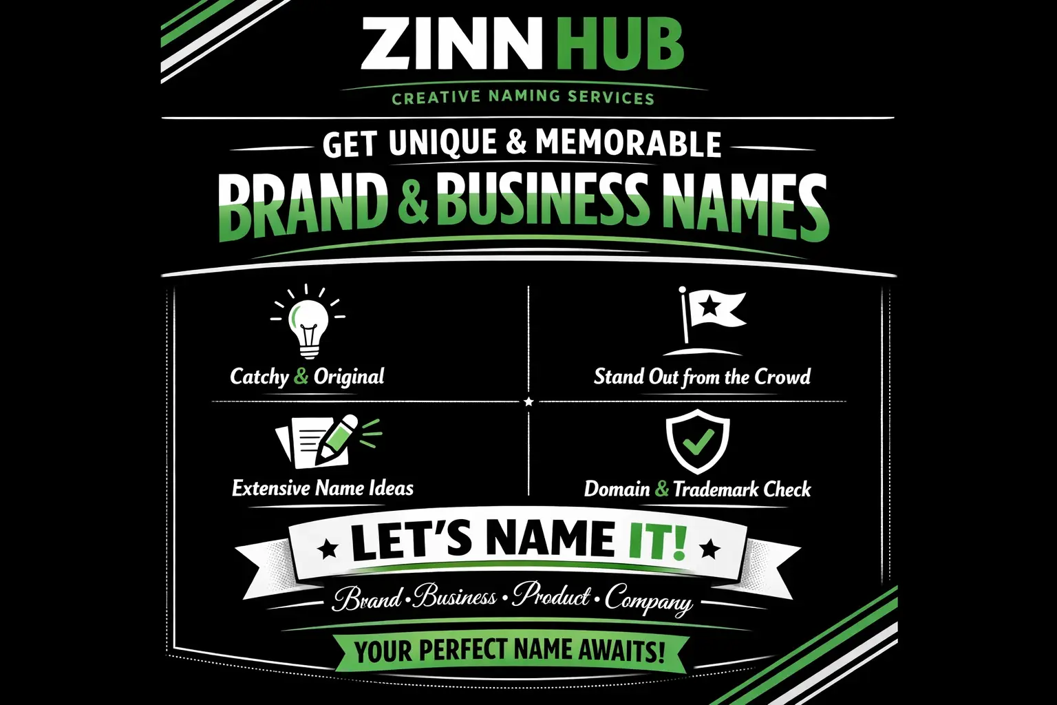 With our proven naming strategies, Zinn Digital ™ will create catchy, original, and memorable names that set you apart from the competition and stick in your customers' minds. Whether you are launching a new brand, starting a company, introducing a product, or building a business identity, we've got you covered from our London, England headquarters.