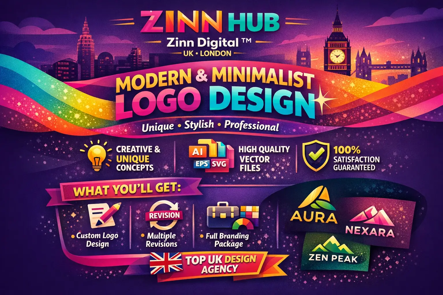 Zinn Digital ™ offers Premium Logo Design services to ensure your business stands out with professional and unique logos. As a full-time professional graphic designer based in London, England, we bring extensive experience in creating modern, unique, flat, luxury, creative, professional and minimalist logos tailored to your business needs.