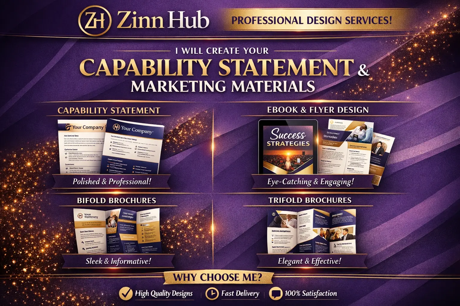 Hi, I'm from Zinn Digital ™. I combine copywriting with graphic design to create professional capability statements and company profiles. I've been doing this for 10+ years, following a 20-year career with IBM. Based in London, England, our team delivers exceptional design solutions.