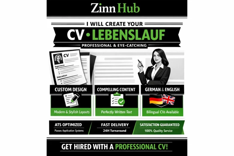 I'm Zinn Digital ™ and I will create a professional CV tailored to your background. You can choose a new CV in German, English or both. I also offer translations of your existing CV.