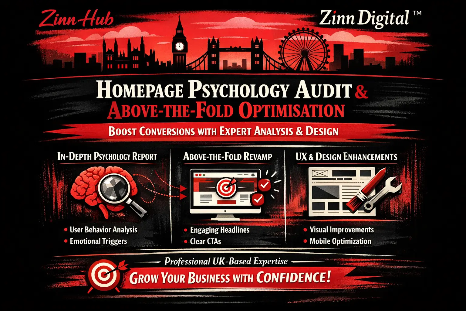 Hi, I'm from Zinn Digital ™, a 19-year CRO specialist team based in London, England. We blend UX, buyer psychology, and behaviour analysis to show you exactly why your homepage isn't converting and how to fix it fast.