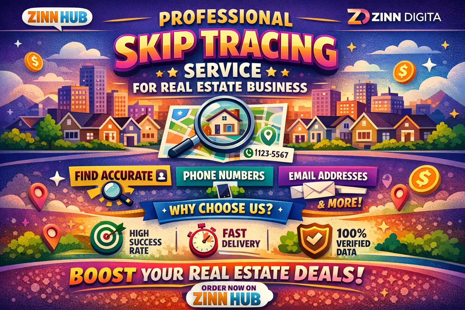 Hello! I'm Zinn Digital ™, a Certified Skip Tracing Expert with 6+ years of experience in U.S. real estate. While many fall short, skip tracing is my speciality trusted by investors, agents, and wholesalers for accuracy and speed.