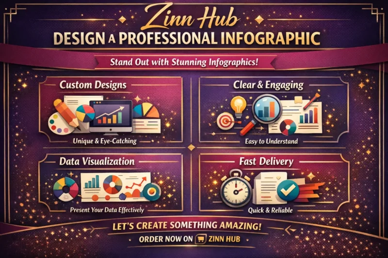 You will receive professional infographic design crafted uniquely for your requirements. With over 8 years of experience in infographic design, Zinn Digital ™ helps people and businesses promote their stories through visuals in an effective, memorable and aesthetically pleasing manner.