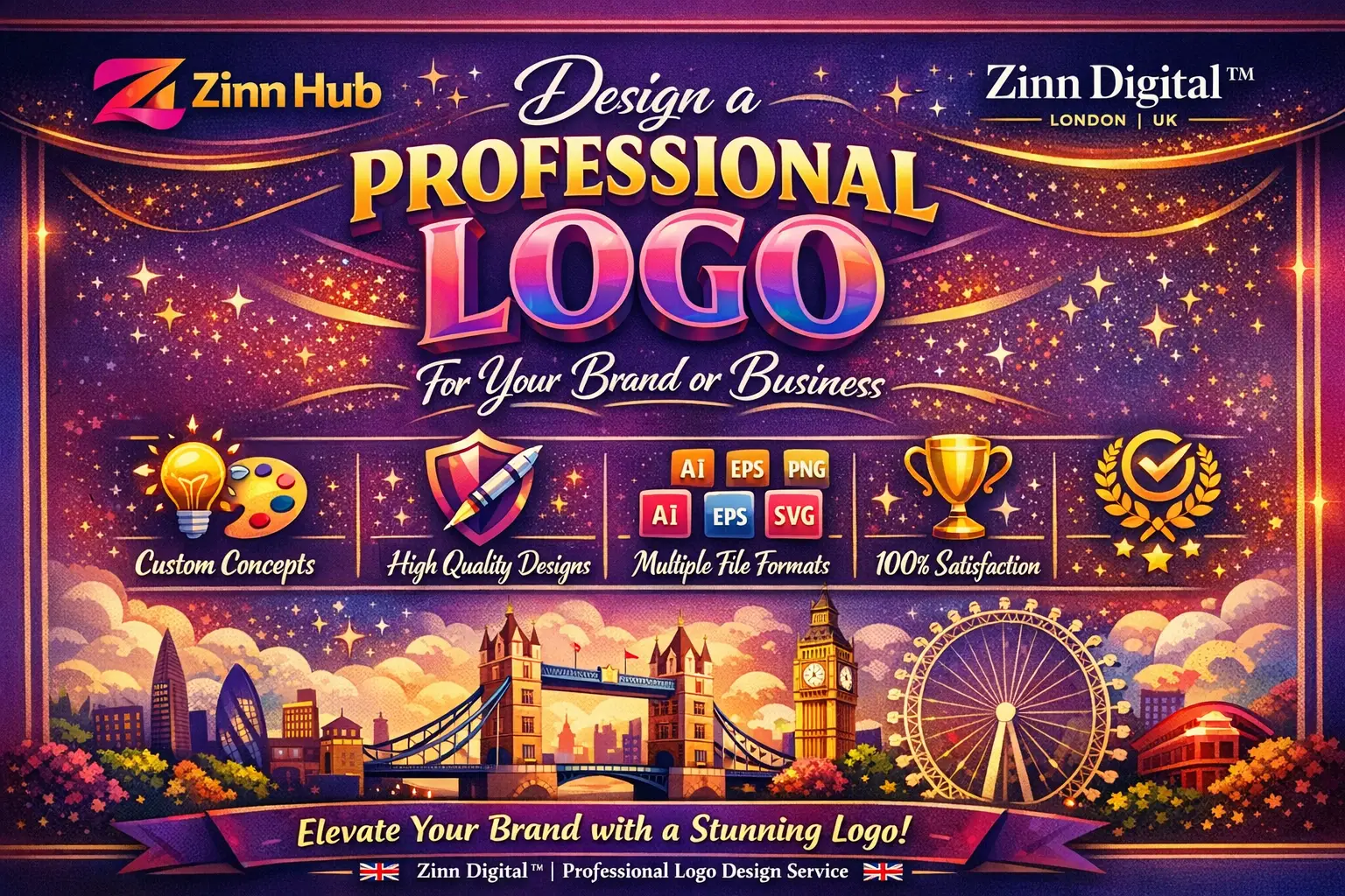 We are professional, full-time graphic designers based in London, England, working exclusively on Zinn Hub. We will apply our creative expertise to your brand given your specific requirements, with extensive experience in the visual arts and graphic design fields.
