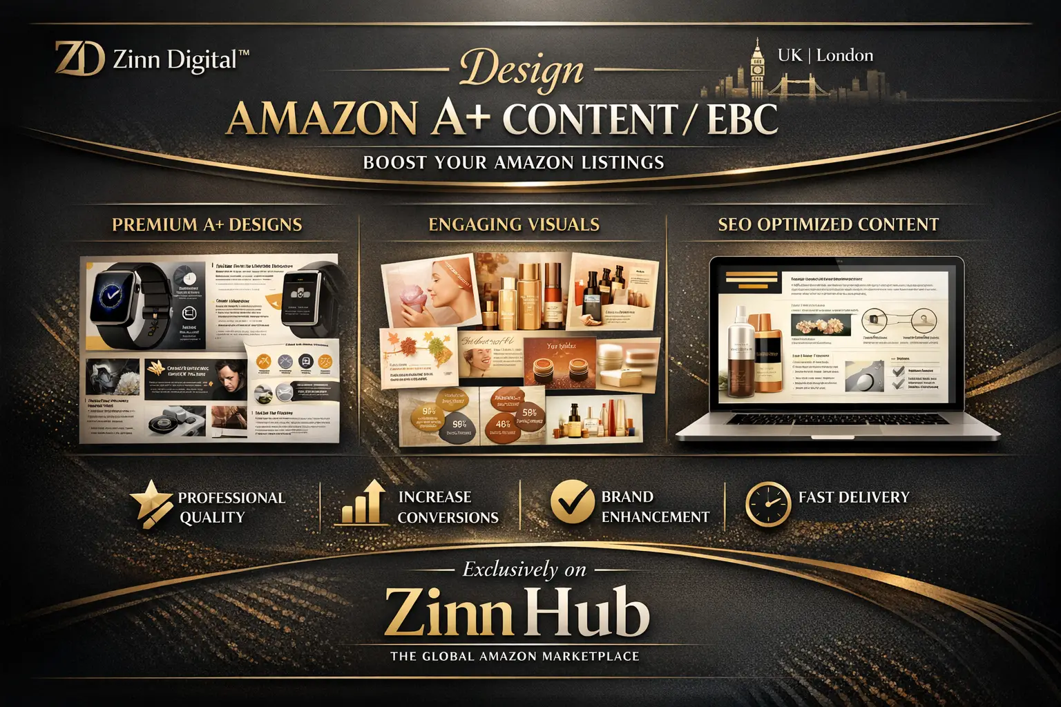 With over 8 years of specialised expertise in the London e-commerce market, we create high-quality, SEO-optimised Amazon A+ Content that: