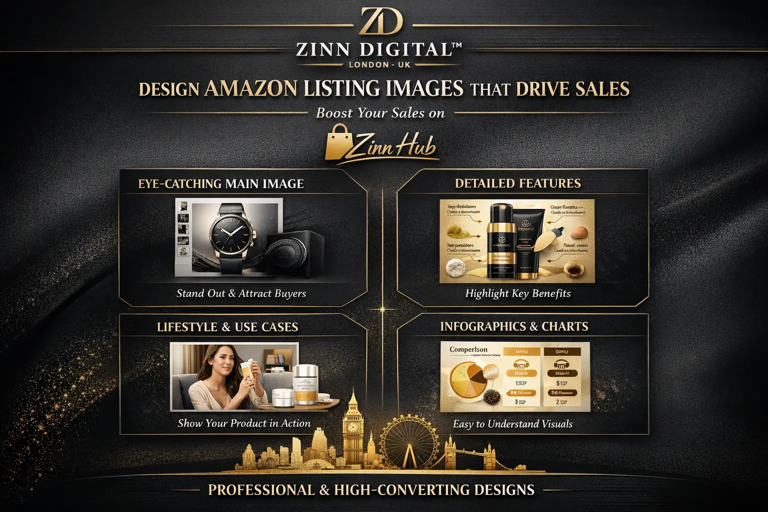 At Zinn Digital™, we've dedicated the past 15 years partnering with successful Amazon sellers across numerous market sectors. We understand what resonates with customers and drives purchases. Professional, strategically designed images can increase your conversion rates by up to 45% - precisely what this service delivers.