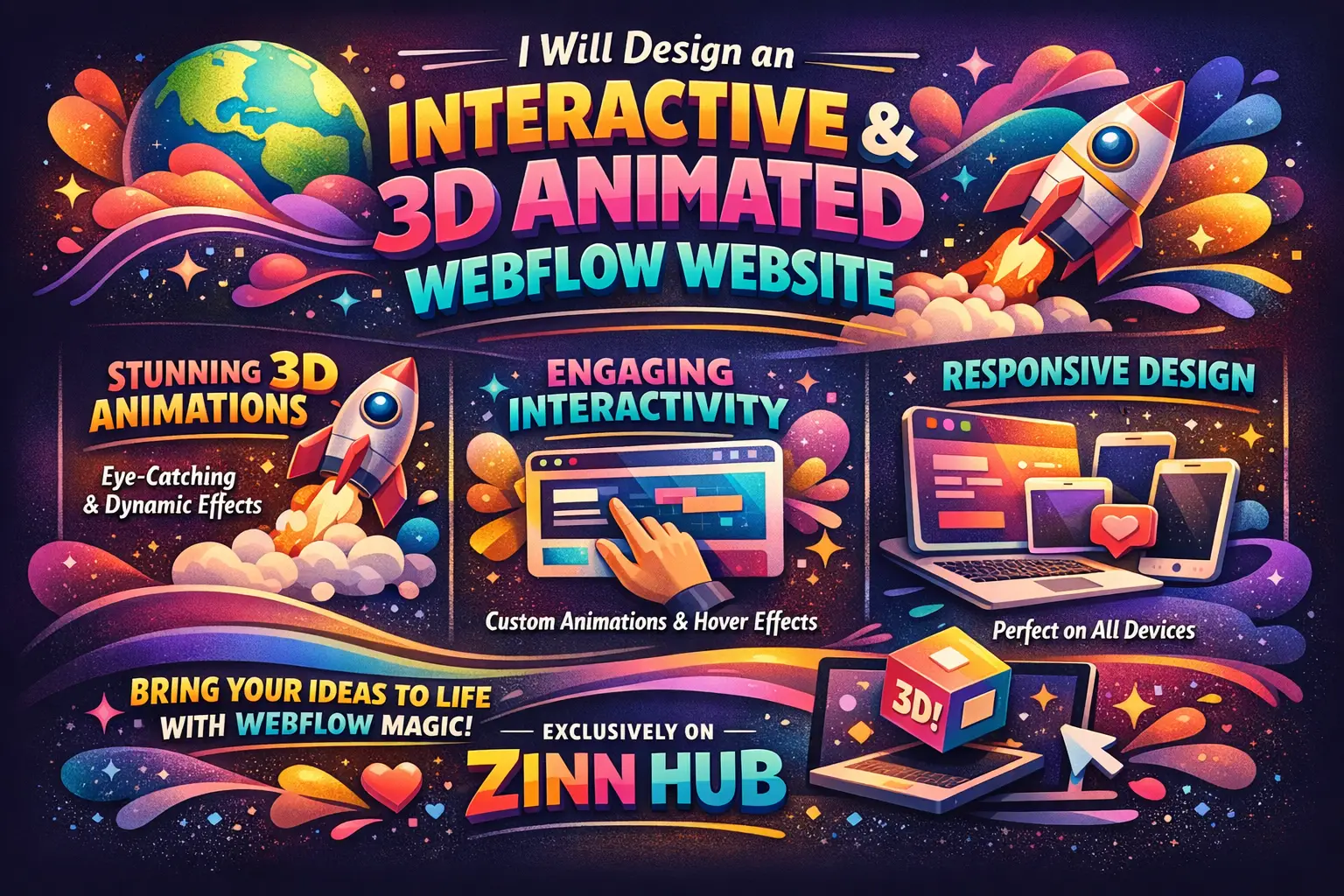 design an interactive and 3d animated webflow website