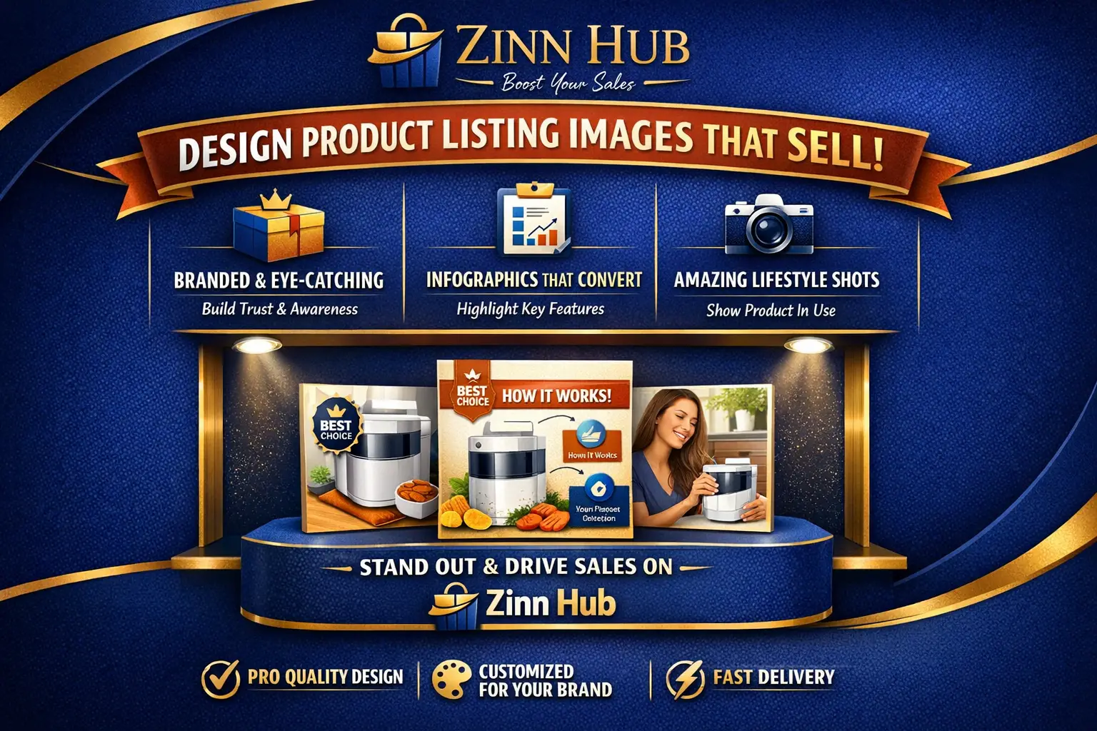 I offer product images, infographics, packaging mockups, color changes, translations, and A+ Content. Custom requests? Message me!