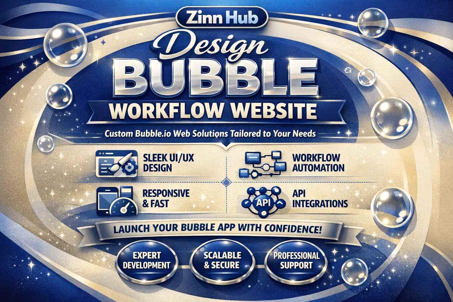 I will design your business website on bubble.io and help you set up your domain and hosting as well.