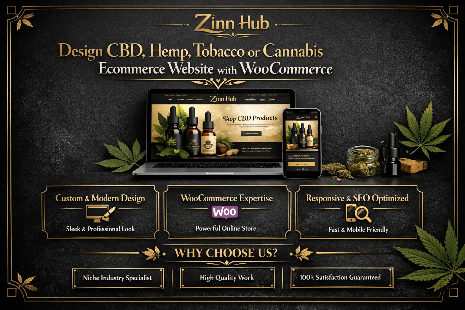 design cbd hemp tobacco or cannabis ecommerce website with woocommerce