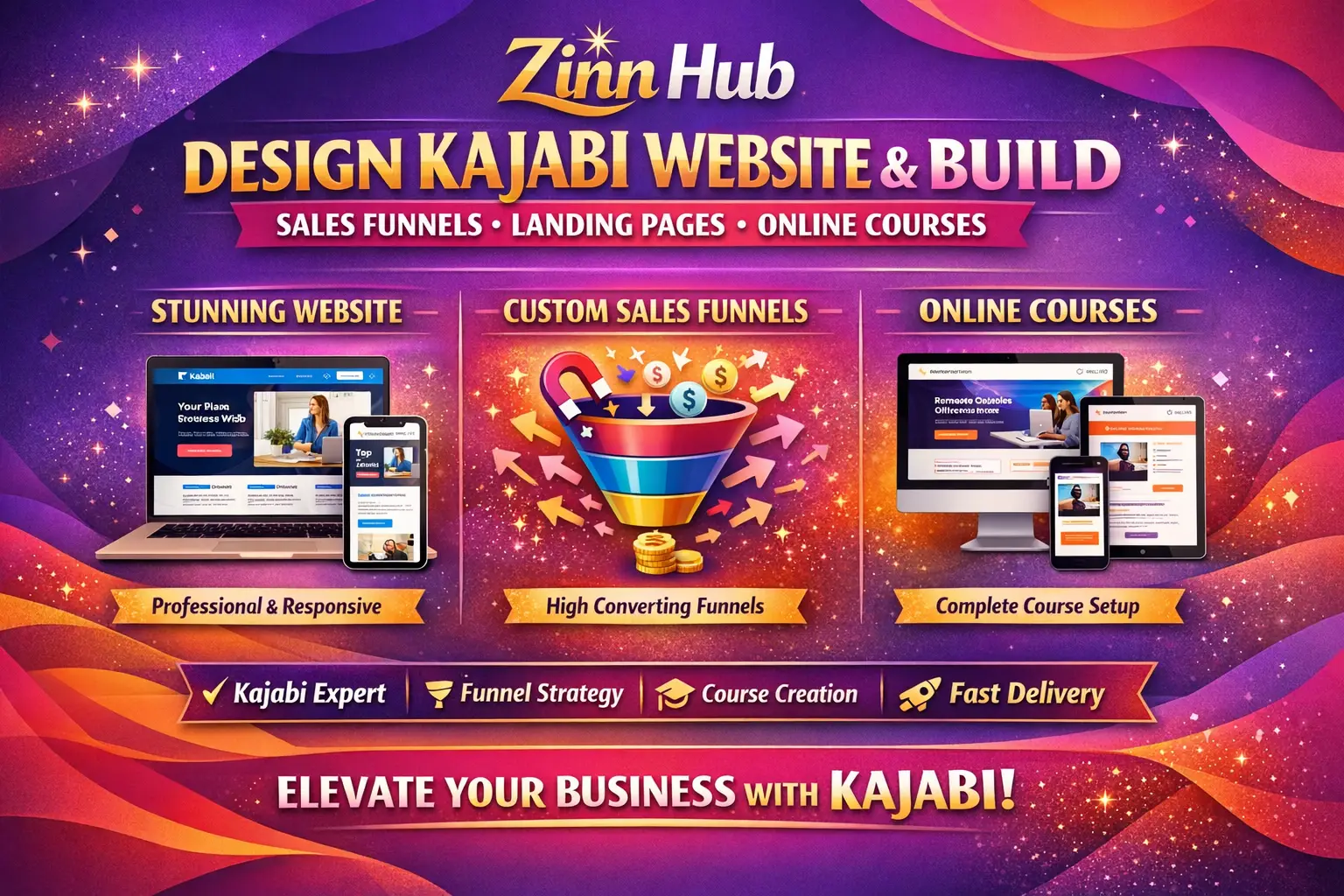 With 5+ years of experience, Zinn Digital ™ specialises in creating high-converting Kajabi websites, landing pages, sales funnels, and online course setups, and email sequences that align with your vision. Whether you're launching a new course, setting up a membership site, or optimising your sales funnel, we can bring your ideas to life from our London, England base.