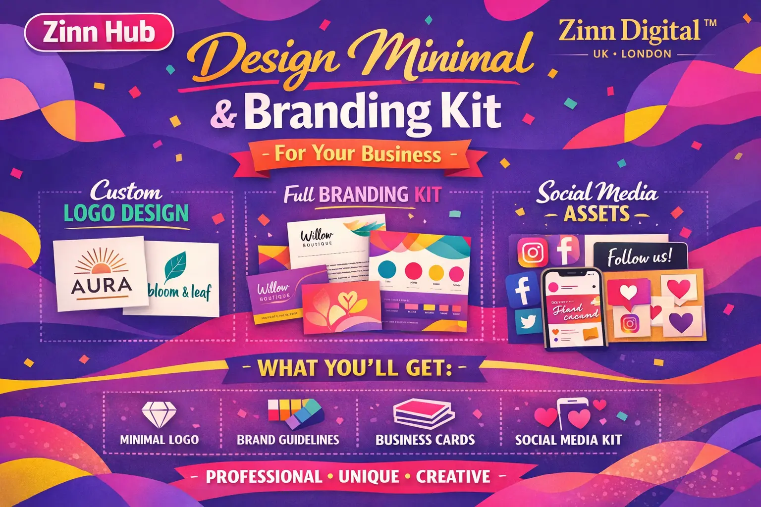 For additional Logo Concept, Custom-Made Editable Feed Templates, Thank You Card, see Zinn extras.