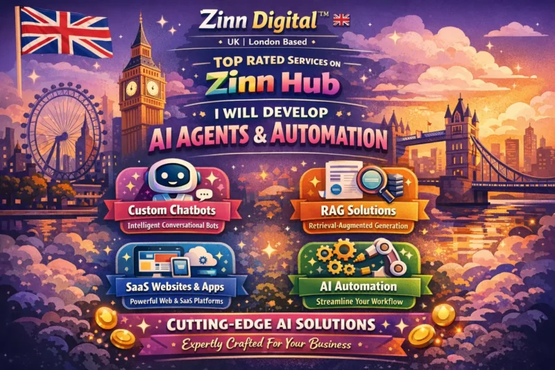 Based in London, England, with expertise in AI and machine learning, Zinn Digital ™ can create a custom AI-powered application that meets your unique needs and requirements. Whether you want a chatbot that can answer customer queries, a recommendation engine that suggests products or services, or an app that generates creative content, we can help you achieve it.