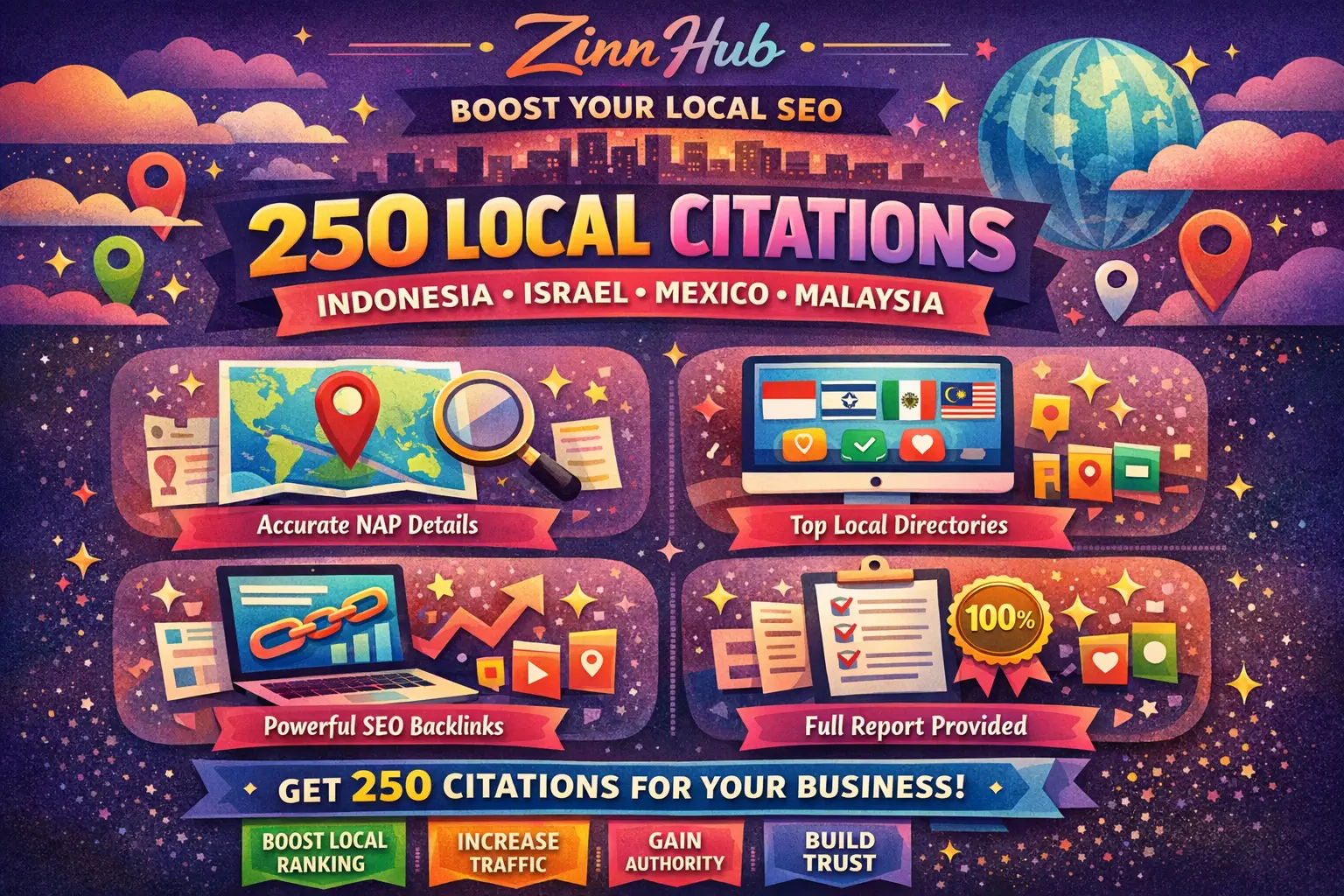 do 250 local citations indonesia israel mexico malaysia seo link building