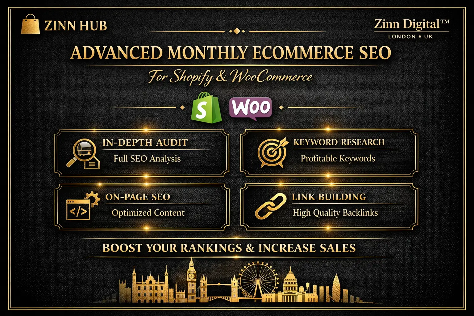 Based in London, England, Zinn Digital™ is ready to transform your e-commerce presence. Contact us today to begin your SEO journey.