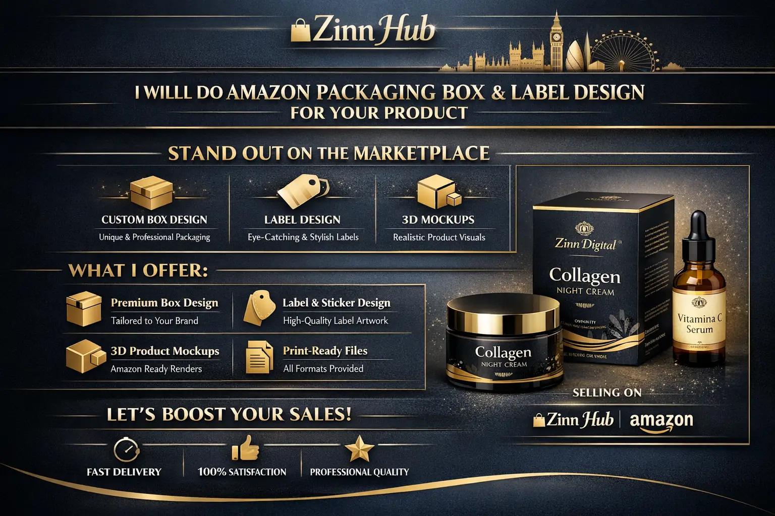 Zinn Digital™ offers exceptional product packaging design services that help sellers distinguish themselves in the competitive Amazon marketplace. Our designs create memorable unboxing experiences for your customers, increasing the likelihood of repeat purchases and strengthening brand recognition.