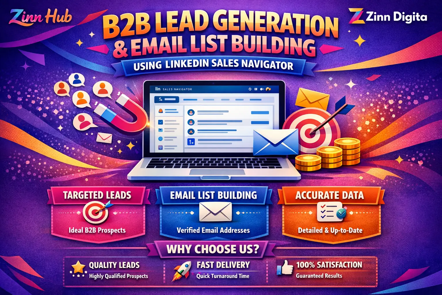 Are you seeking quality leads to boost sales and foster business growth? Look no further! If you're in need of potential B2B leads for a successful cold email campaign, you've come to the right place. Zinn Digital ™ is dedicated to generating valid and verified leads tailored to your specific requirements.