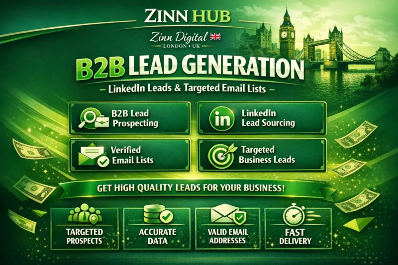 Welcome to my B2B Lead Generation Zinn! If you're looking to boost your business with high-quality leads, you're in the right place. Our team at Zinn Digital ™, based in London, England, specialises in LinkedIn Lead Generation, Prospect Email List Building, and Targeted Email Leads to help you grow your business efficiently.