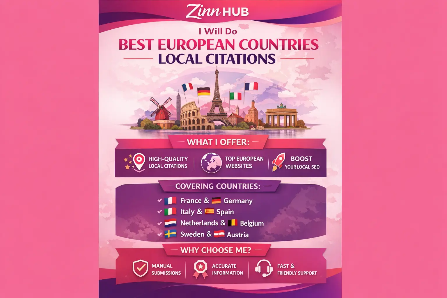 With over 4 years of hands-on SEO experience, Zinn Digital ™ offers professional European local citation services designed to improve your local rankings, increase trust, and attract genuine local traffic from our London, England headquarters.