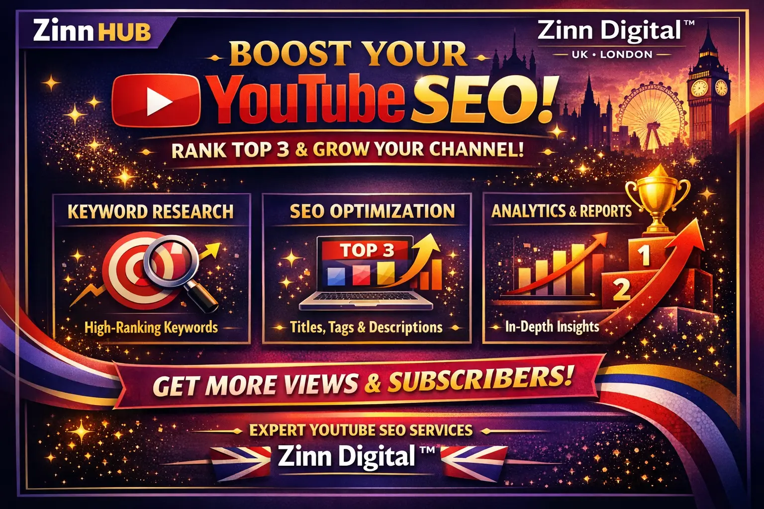 Hello, this is Zinn Digital™. We will optimise your YouTube video for SEO, ensuring it ranks on the first page within the top 3 to 5 positions.