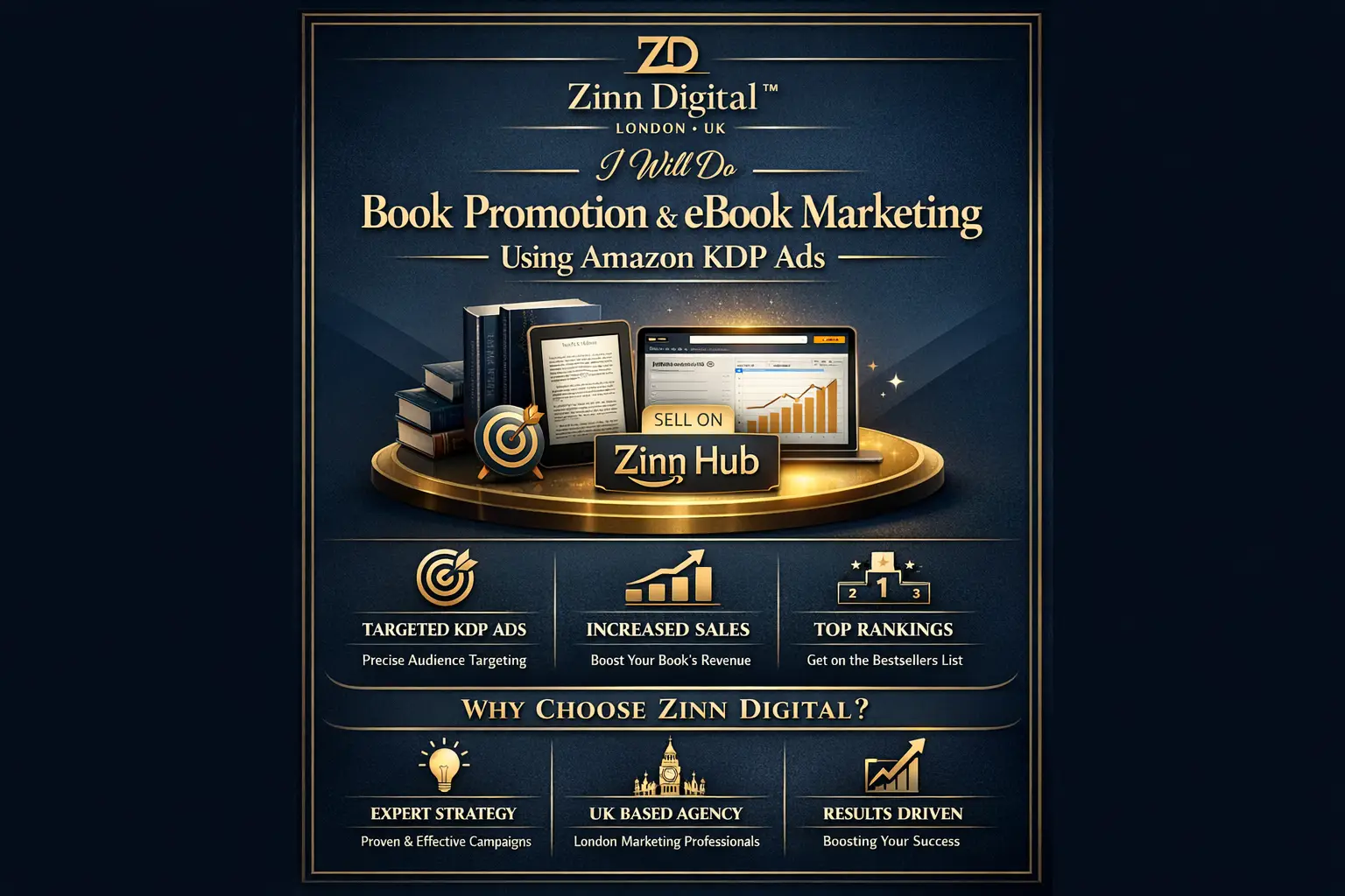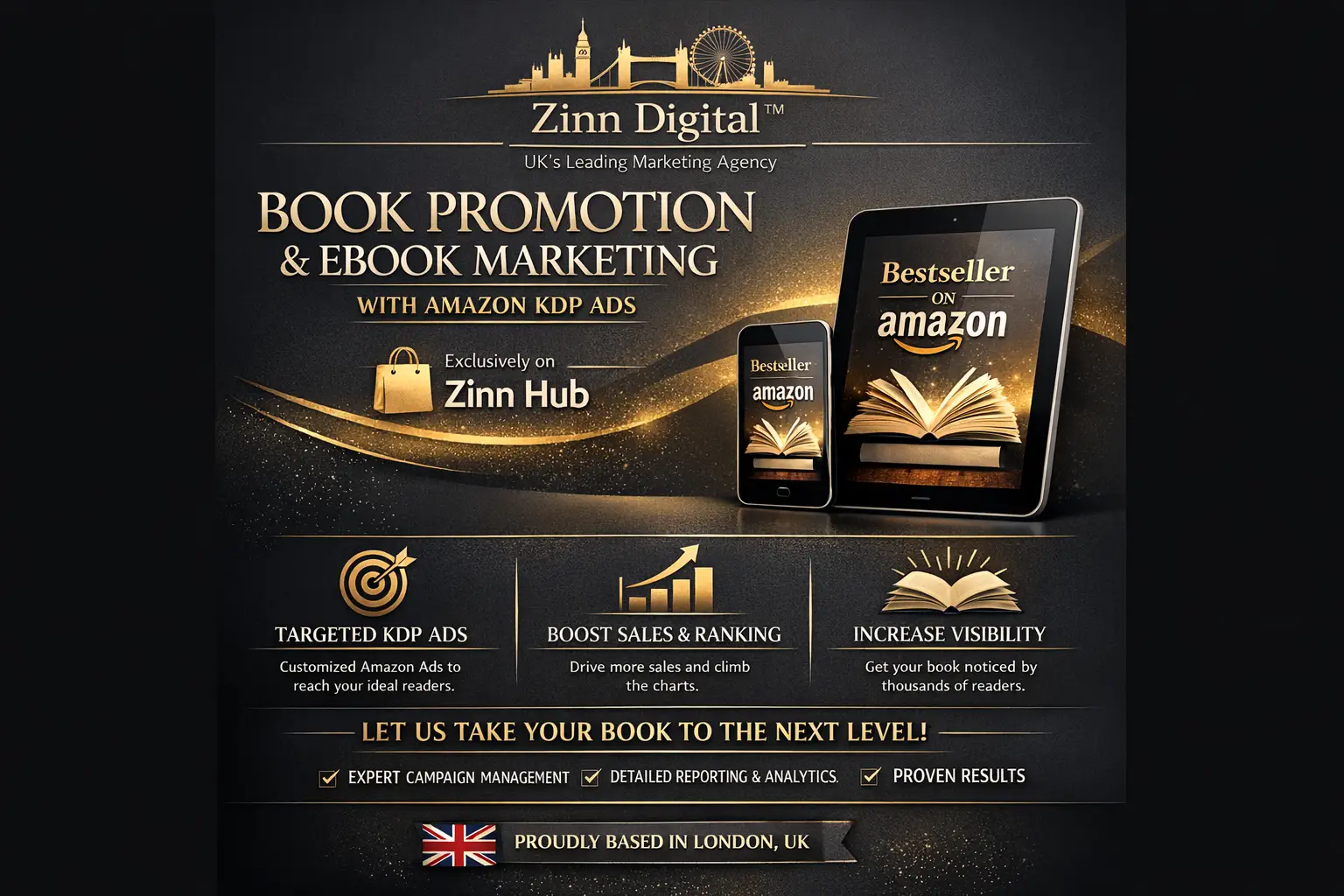 **Elevate your literary work in the competitive publishing landscape with our strategic advertising approach.** Partner with Zinn Digital™ in London, England to showcase your book through powerful, results-driven promotion!