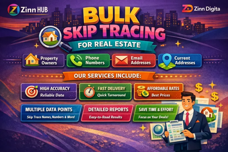 Welcome to the right place! Zinn Digital ™ is a specialist in Skip Tracing, Bulk Skip Tracing, LLC Skip Tracing and Lead Generation for Real Estate businesses with best accuracy. We have been working for more than 6 years as professional Skip Tracers from our London, England base.