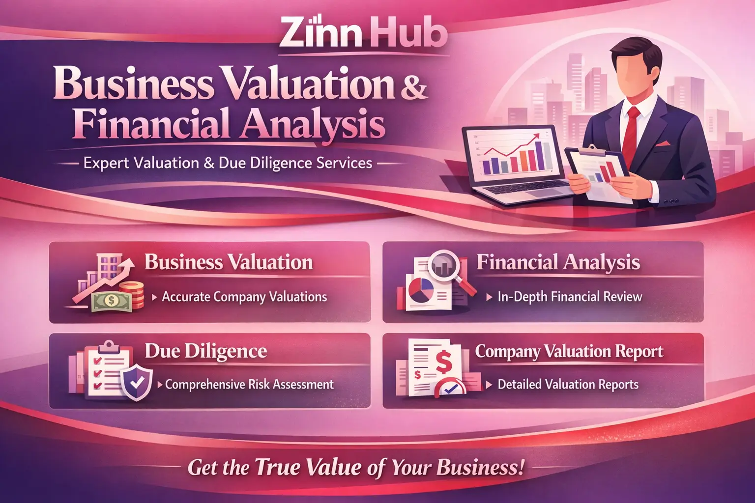 Let's determine your company's real value accurately, transparently, and professionally through our expert Zinn Hub services.