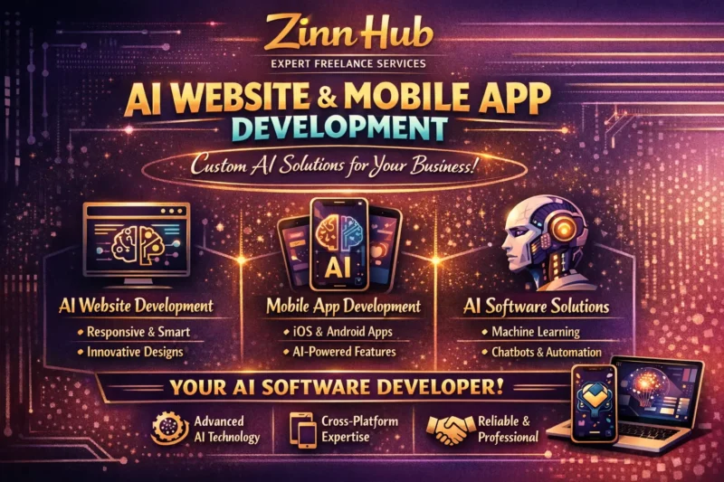 With 5 years of experience building full-stack web and mobile applications, Zinn Digital ™ creates intelligent, high-performing AI software tailored to your specific needs. From AI-powered websites to advanced mobile apps and automation tools, our London, England-based team focuses on developing software that's not just smart but also easy to use.