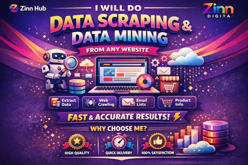 Zinn Digital ™ offers expert web scraping, data mining, and file-based data extraction using Python tools like Selenium, BeautifulSoup, and Scrapy. Based in London, England, we help researchers, marketers, and businesses obtain clean, structured data in Excel, CSV, or JSON formats.