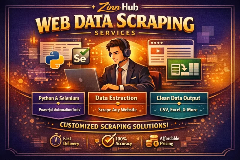 Zinn Digital ™ provides bespoke web scraping and automated data extraction utilising Python, Selenium, and APIs. From product listings and price tracking to contact leads and market data, we'll deliver actionable datasets in your preferred format.