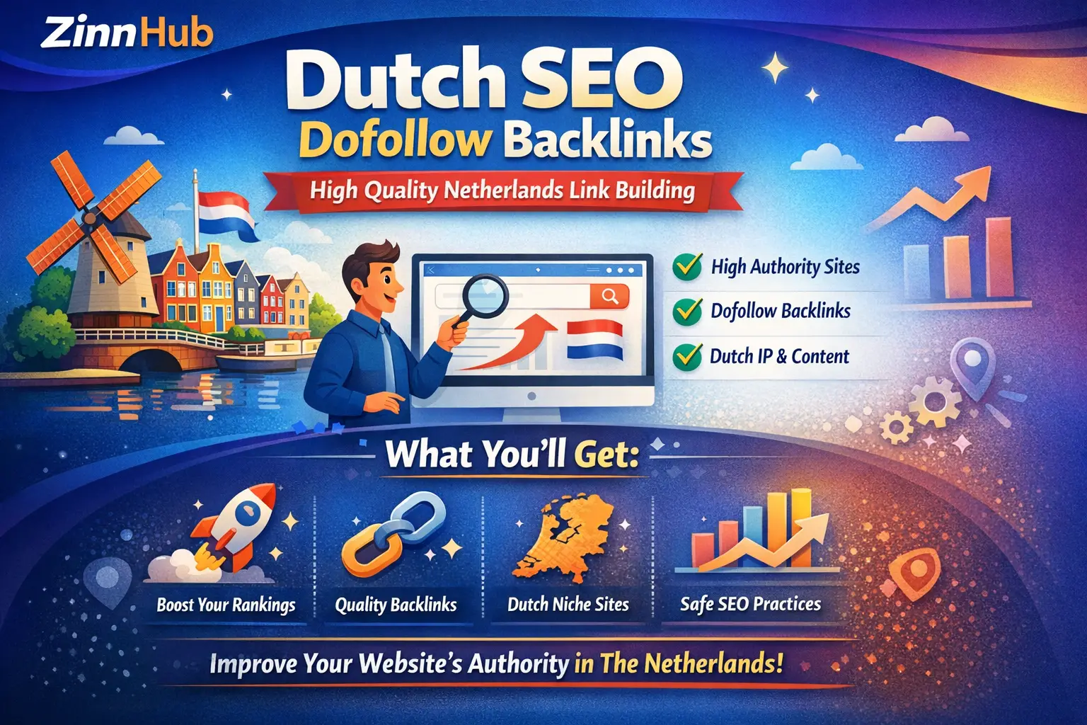And receive the highest authority Dutch backlinks & Netherlands SEO boost.