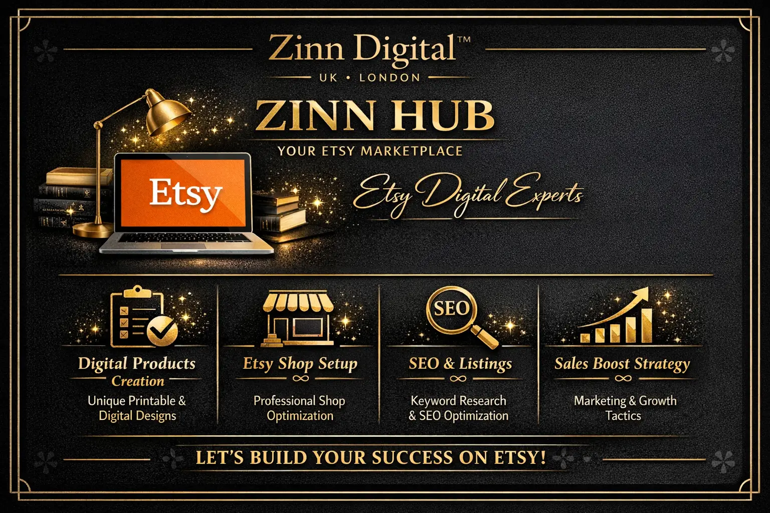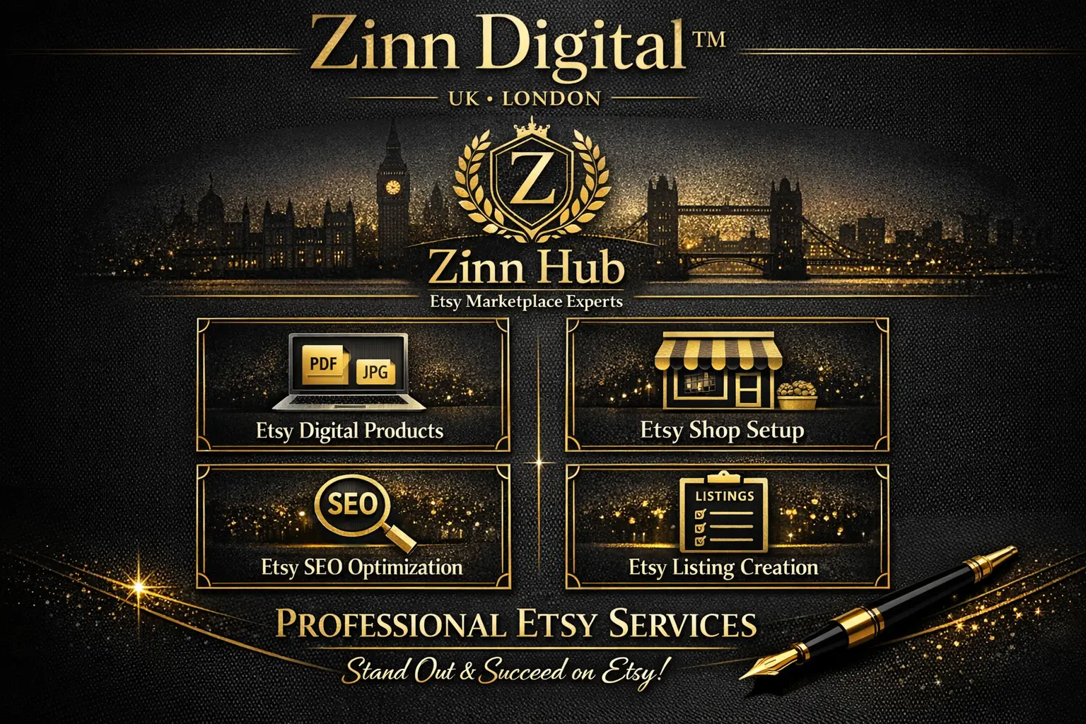 Based in London, England, Zinn Digital™ brings genuine Etsy expertise combined with a personalised approach tailored specifically for your shop's unique goals. Every setup is thoughtfully crafted using proven strategies to help your store stand out in a competitive marketplace. You'll receive timely delivery, comprehensive support, and our full commitment to your satisfaction because we're not just building shops—we're helping you build your dream business.