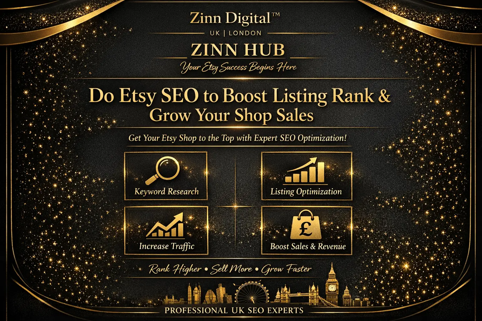 Based in London, England, Zinn Digital™ offers strategic Etsy SEO solutions that strengthen visibility and transform listing performance. Let us help you achieve your Etsy shop's full potential today.