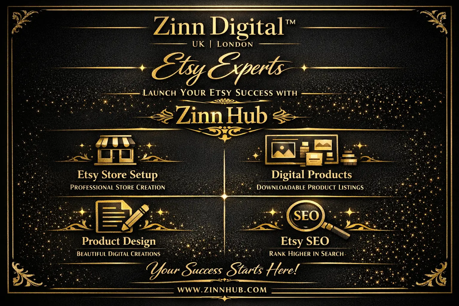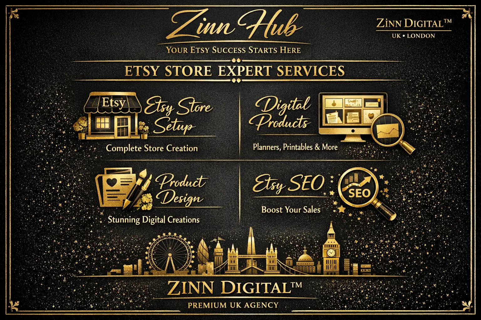 Based in London, England, we specialise in profitable Etsy shop setup, professional digital product design, and comprehensive SEO optimisation tailored specifically for your Etsy shop—providing everything you need to get noticed and start generating sales on the Etsy marketplace.