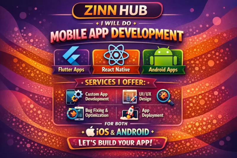 At Zinn Digital ™, we develop mobile apps for iOS and Android using Flutter and React Native, creating fully functional, scalable, and visually appealing solutions. Based in London, England, we deliver seamless mobile app development from design and backend integration to API setup and full deployment for startups and businesses, whether it's a simple MVP or a complex business tool.