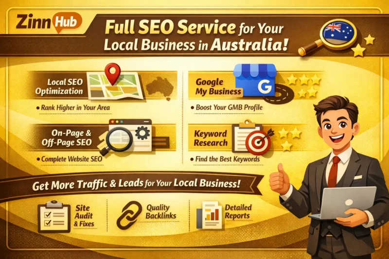Are you looking to improve your business's visibility in the Australian market? Zinn Digital ™ specialises in Australia SEO services tailored for Australian businesses. Our Zinn offers a comprehensive S.E.O approach designed to rank your website higher in Australian search results and attract more customers.