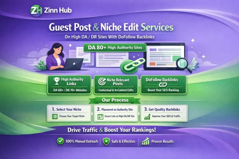 It's Zinn Digital ™. We will deliver guest posting services on our high DA DR sites. Our guest blog receives organic traffic that helps rank your website in search engines. Our websites are general and cover all niches. We utilise white hat SEO techniques for link building. All links are natural. Our websites maintain low spam scores. Links will be dofollow. We also provide high-quality link insertion services or niche edit services on existing articles related to your niche, which helps increase keyword ranking in Google search engines.